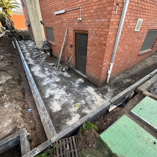 New concrete sleepers were used in the new retaining wall to replace the previous rotted wooden sleepers. A drainage channel was also installed along the entirety of the retaining wall to assist in water run off with a new concrete path poured at an angle away from the church building. To ease the access into the rear area a ramp was also added from the north carpark side.